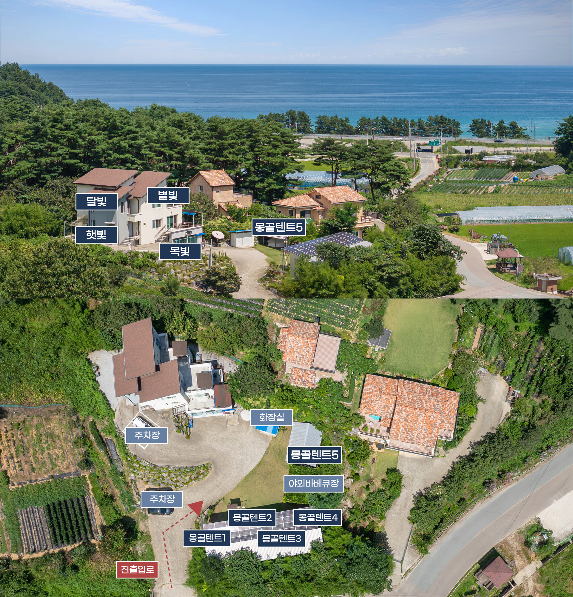 양양 슬로우스테이 펜션 배치도 안내입니다.